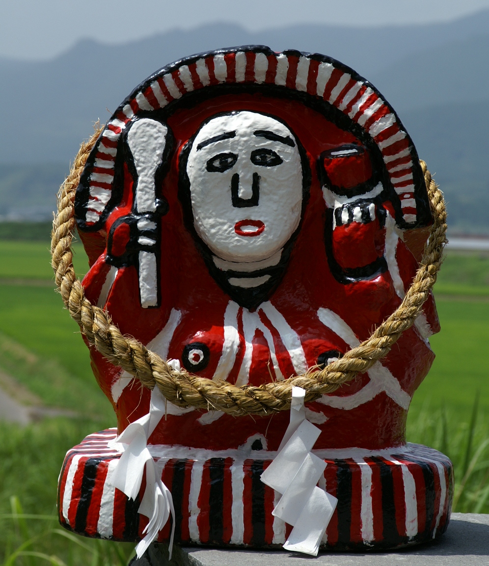 頭巾を被った頭にふくよかな福耳、ほころんだ笑顔……。パッと見は七福神の一柱である大黒様だが、その手にメシゲを持ち、肩には稲穂をかけている。