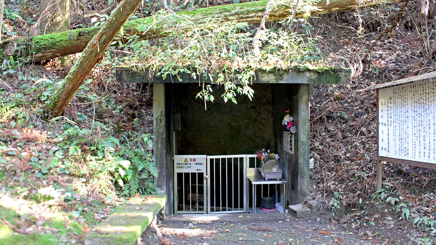 ここは、都城市内に残るかくれ念仏洞で最大規模を誇る。奥行きは26mで高さは3m70cmあり、約40人を収容できたという。崩落の危険があるため、現在は立ち入ることはできないが、暗く静まり返っている内部を入り口から覗き込むことはできる。
