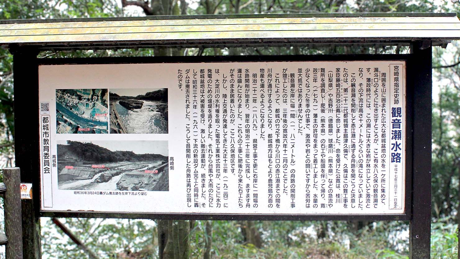 観音瀬水路の歴史を伝える看板