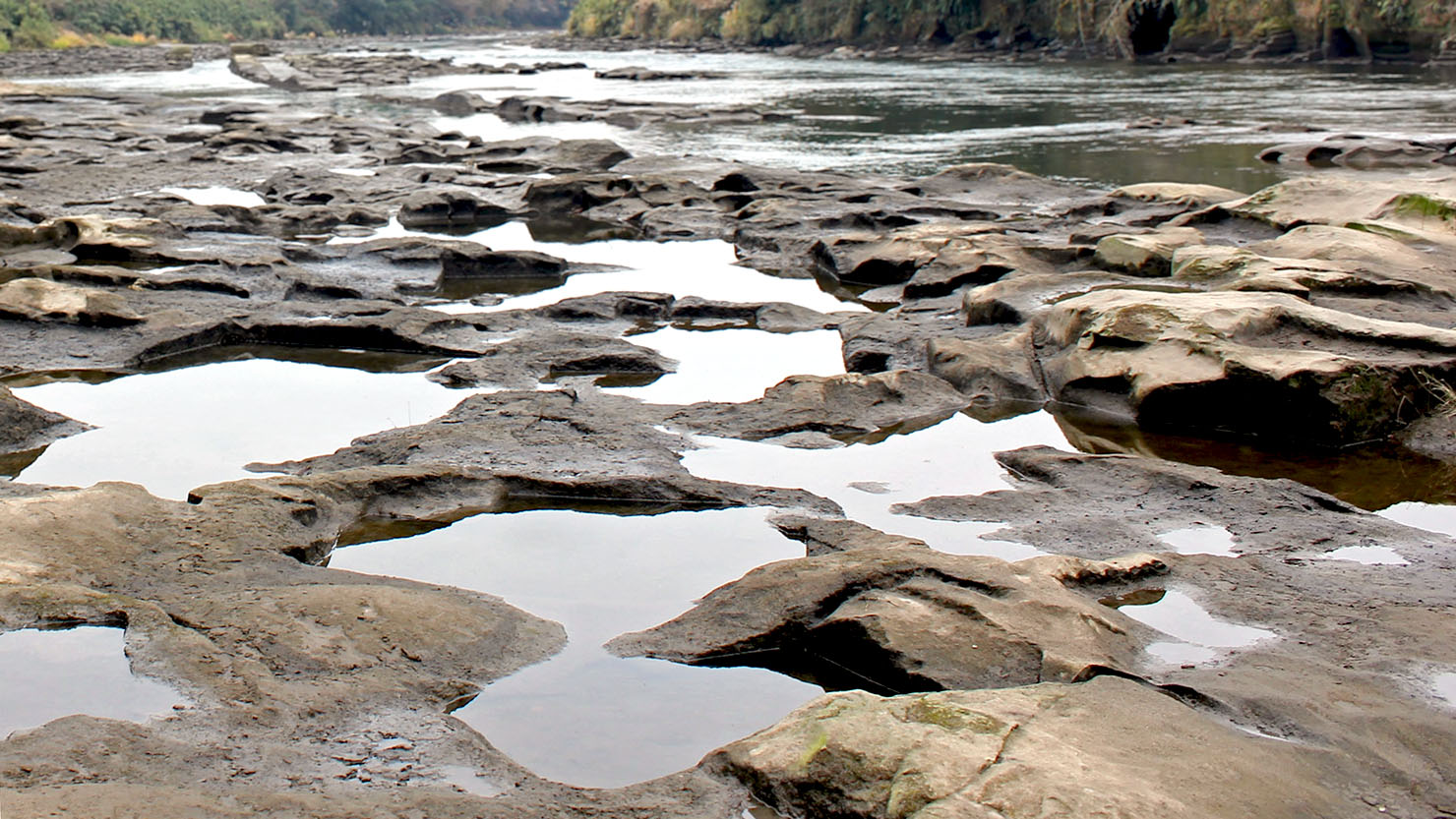 関之尾の甌穴群を思わせるような開削の跡