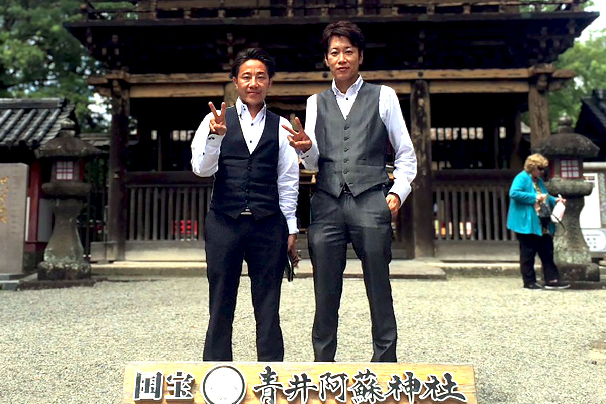 瀬尾氏(左)とドローンショーの責任者を務めた真方誠也氏(右)。JC時代以降の仲間で、盟友(瀬尾氏提供)